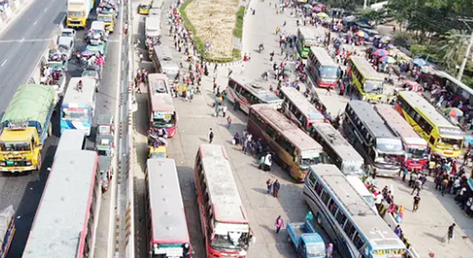 থেমে থেমে চলাচল করছে উত্তরবঙ্গগামী যানবাহন