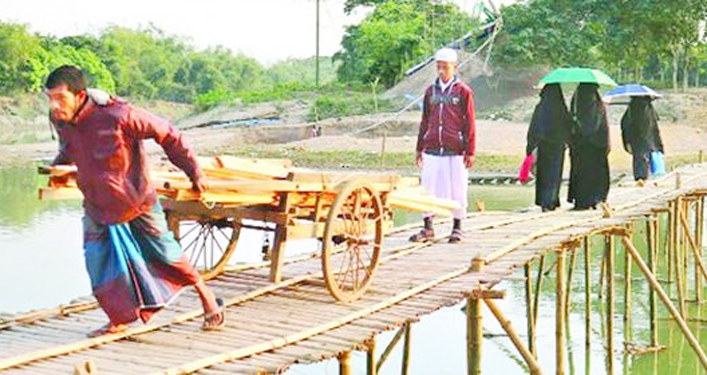 ৫০ বছরেও হয়নি সেতু ৫ গ্রামের মানুষের ভরসা বাঁশের সাঁকো